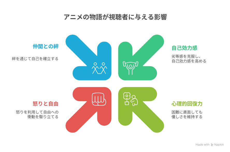 アニメの成長物語は、ただのエンタメなんかじゃない。私たちの心を再構築し、もう一度“生きる力”を呼び起こす装置なんです。心理学が語る希望のメカニズムを、作品たちはずっと前から教えてくれていたのだと思います。