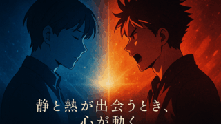 無口キャラと熱血キャラがなぜ愛されるのか?対極の二人に共感が集まるのは、人の心にある“理性と情熱”の共鳴が映されているから。心理学とアニメ文化の視点から、人気の「静×熱」構図を解説。